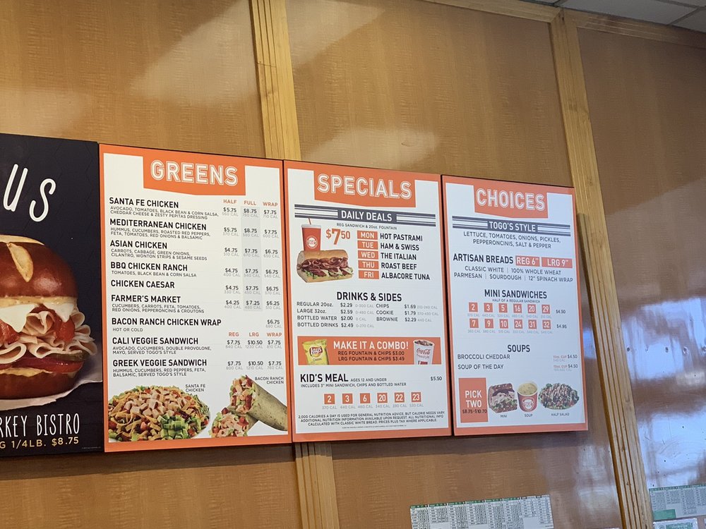 TOGO'S Sandwiches San Leandro Menu (Update 2025)